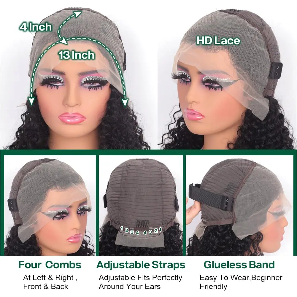 Avec dentelle frontale invisible, densité 200, taille 33 x 10 cm